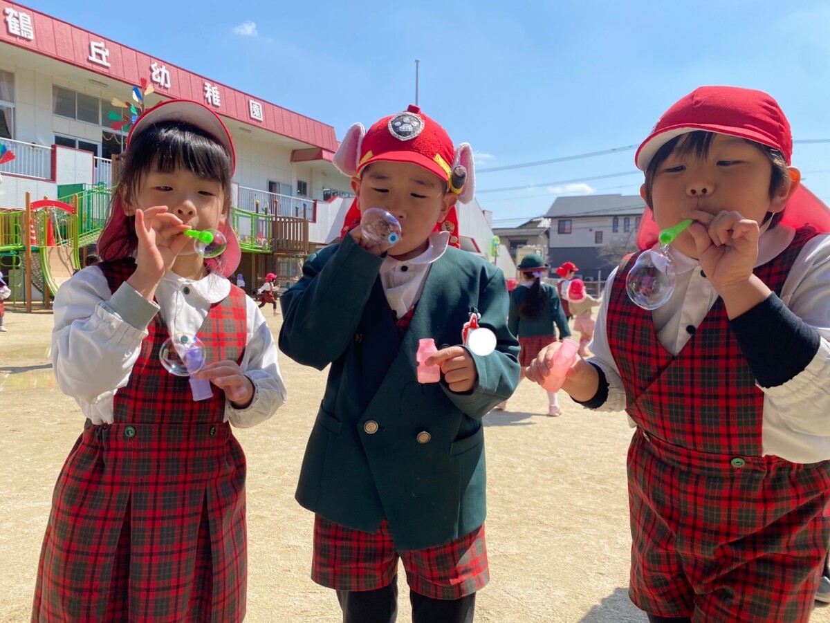 青空にシャボン玉が飛んで、園内が