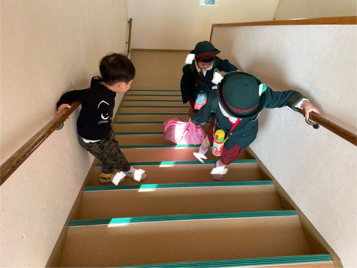 しっかり手すりを持って、1段1段登ってきてくれていますよ💪