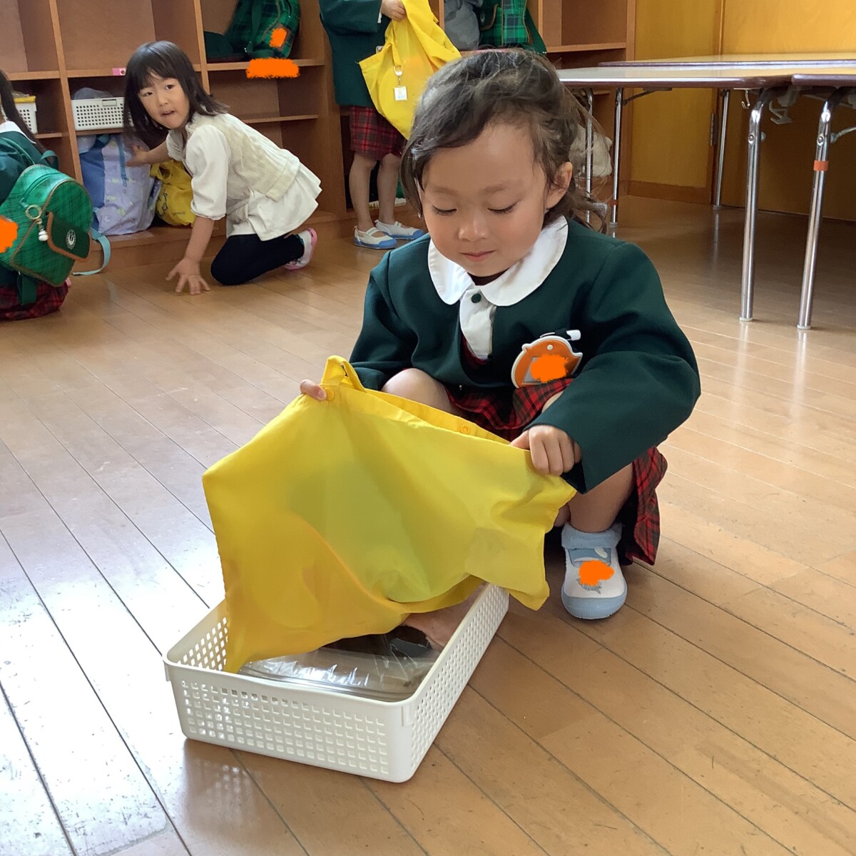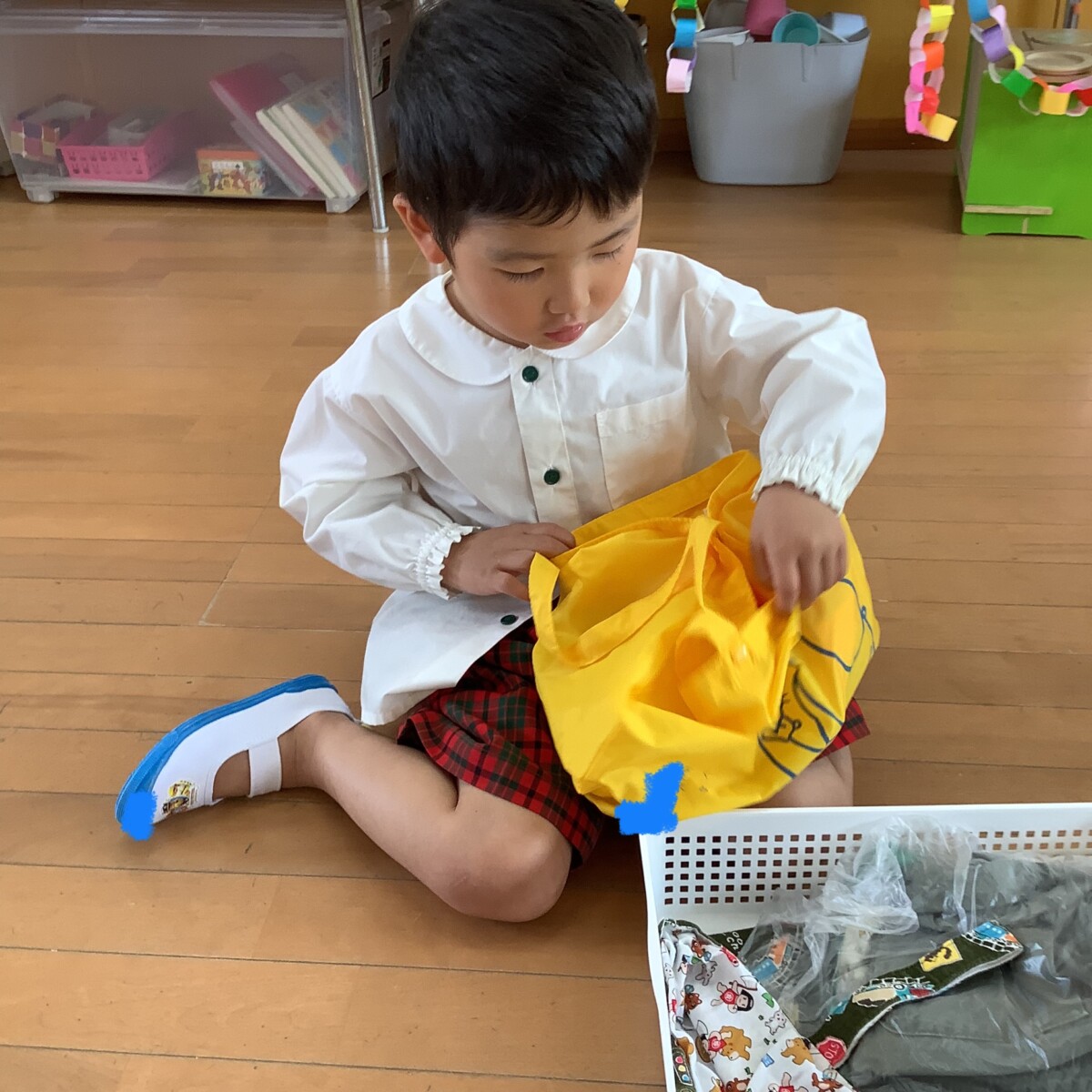 今日は金曜日✨自分たちの使った上靴・帽子をぞうさんバックに入れました✌️
