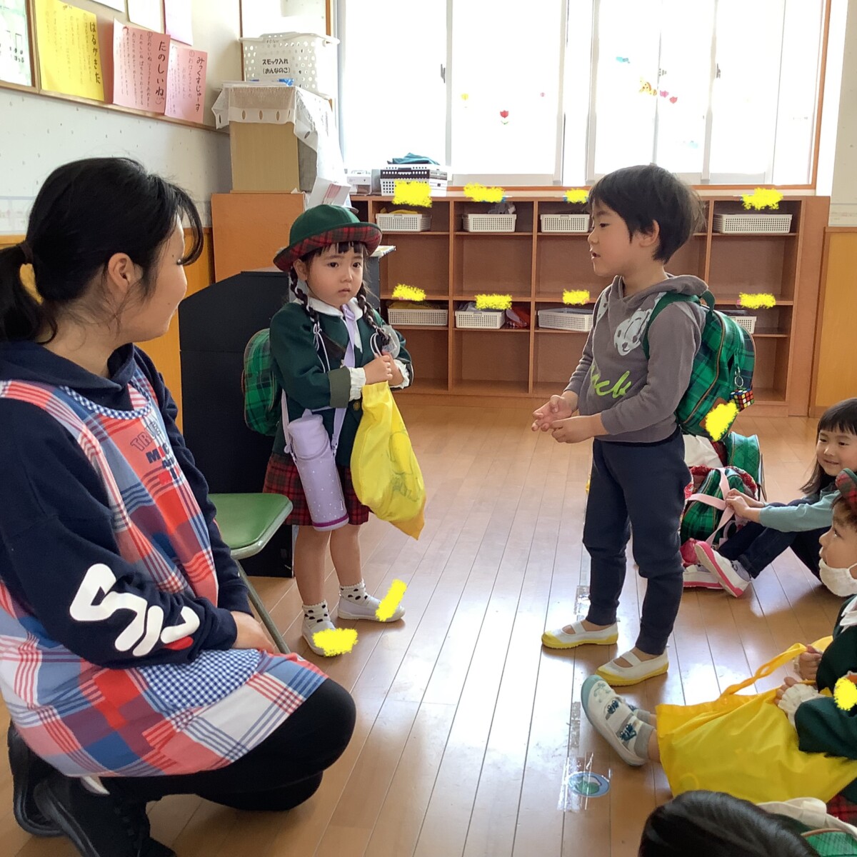 ちょっと緊張している子もまだいますが、お部屋に入るとニコニコ笑顔になるお友だちが多く先生たちはとても嬉しいです♪♪