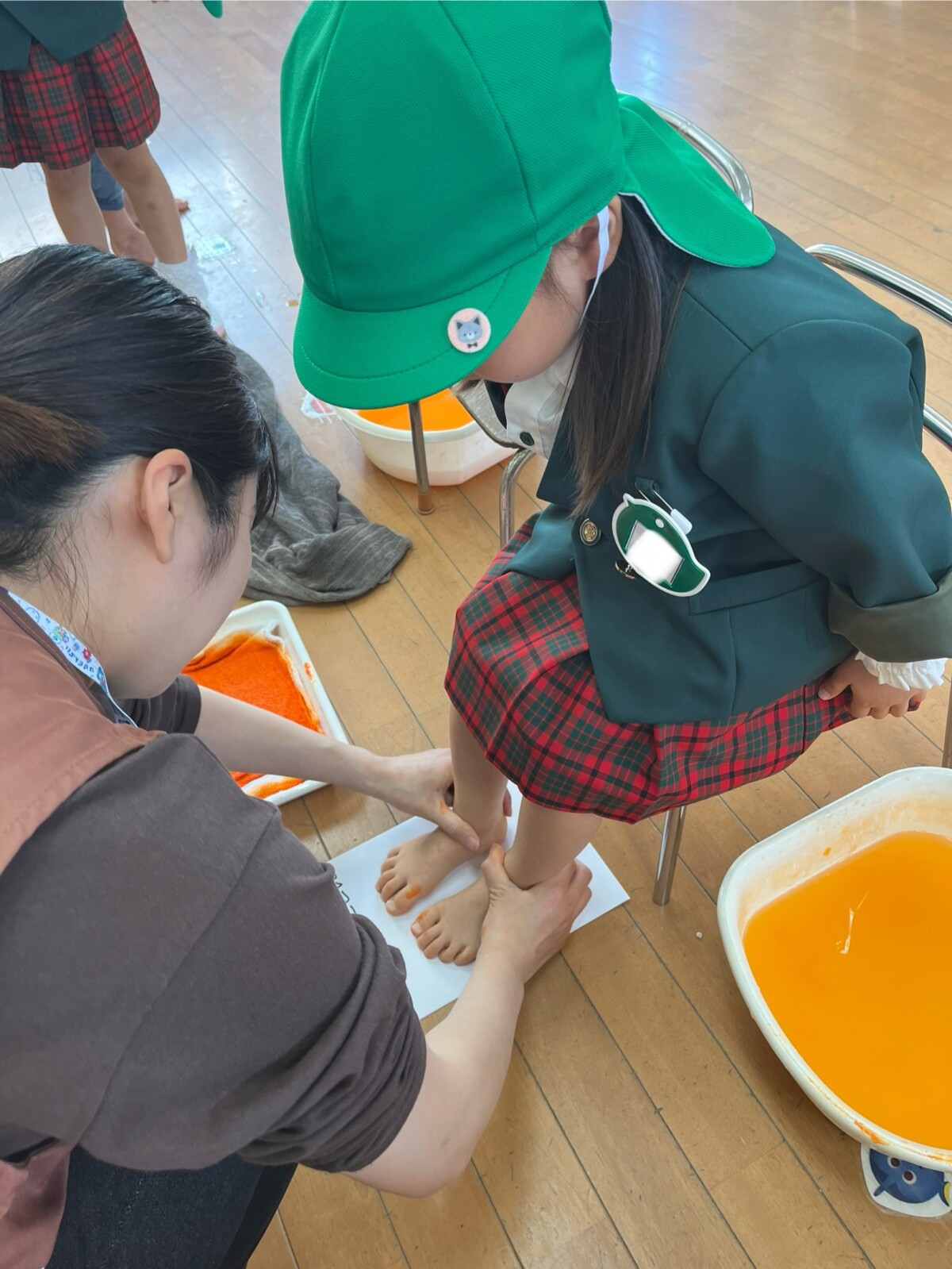 花鶴丘幼稚園では足形をとり土踏まずの形成を確認しています。