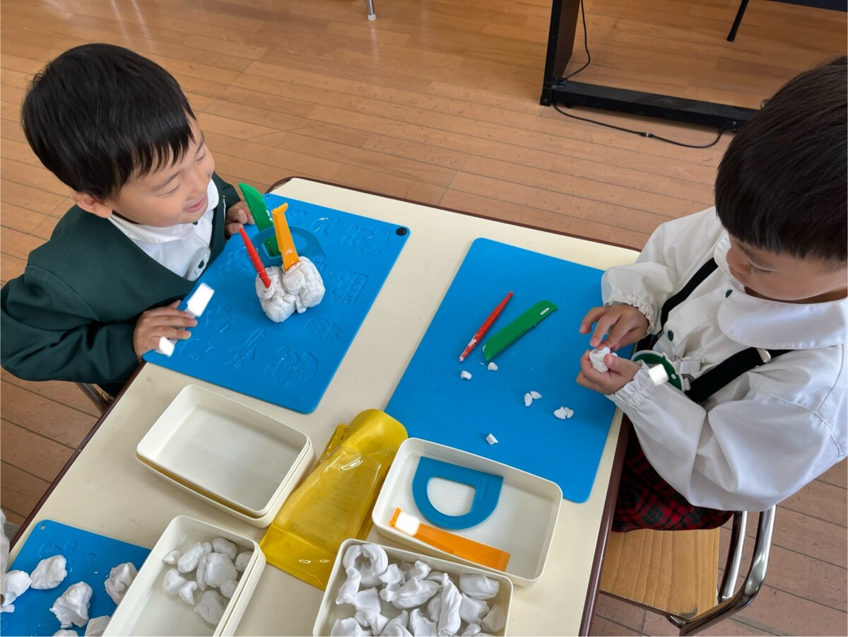 粘土を切ったり、こねたり楽しんでいました⭐️