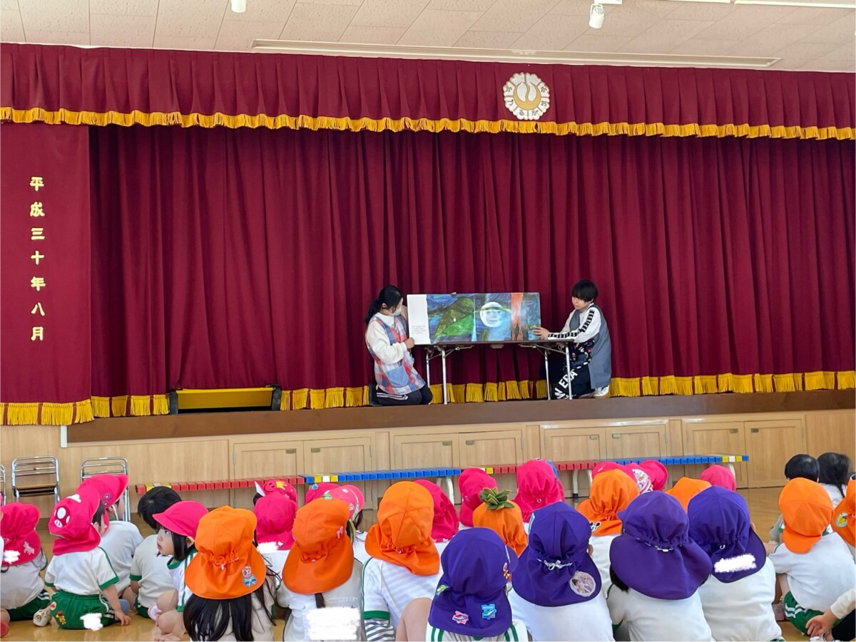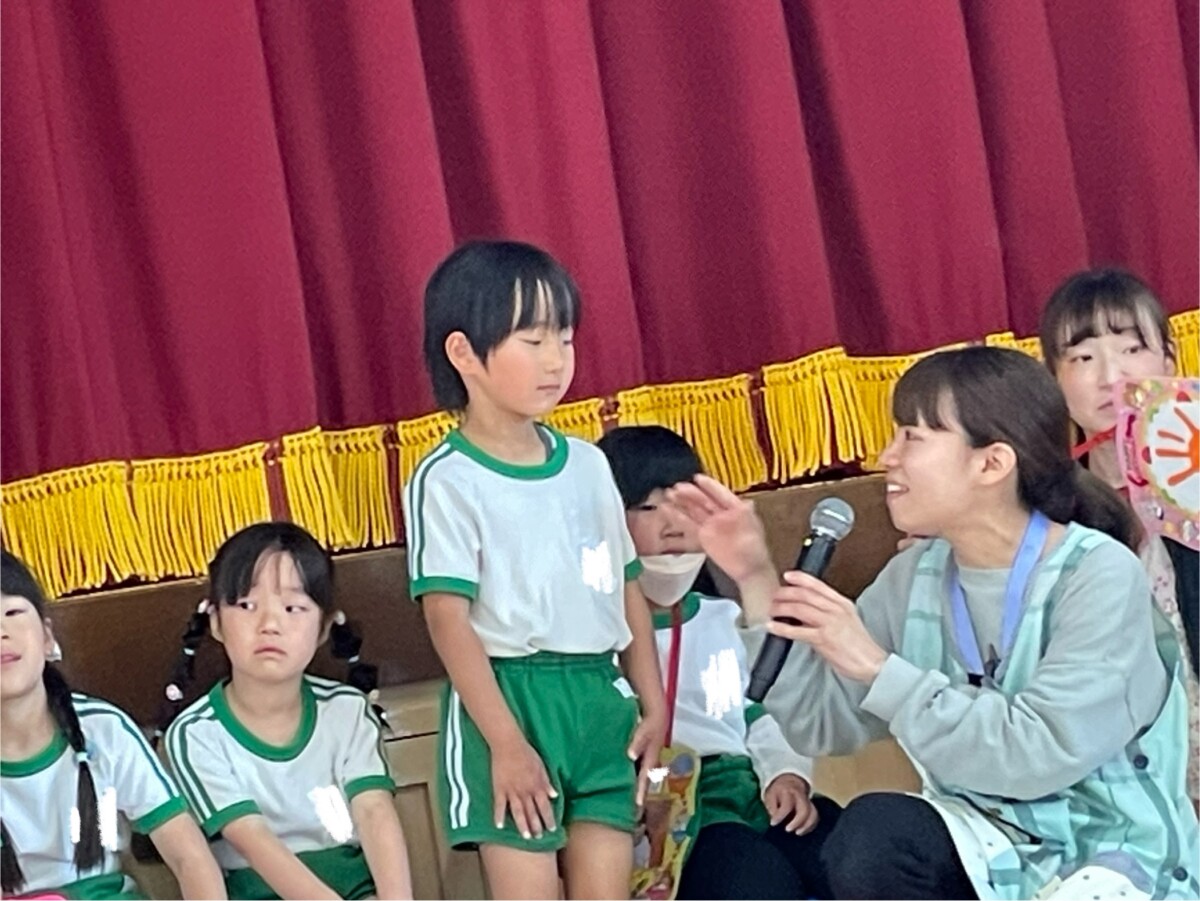 先生たちの出し物では、大きな絵本を読んでもらい、とっても楽しそうでした!