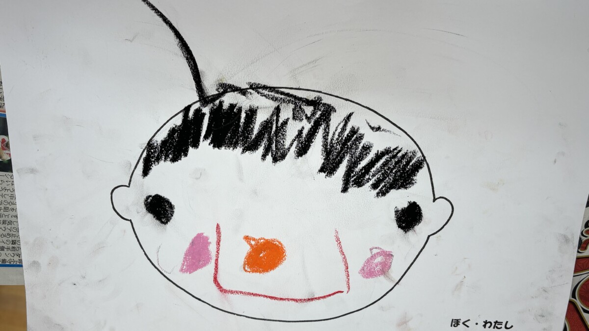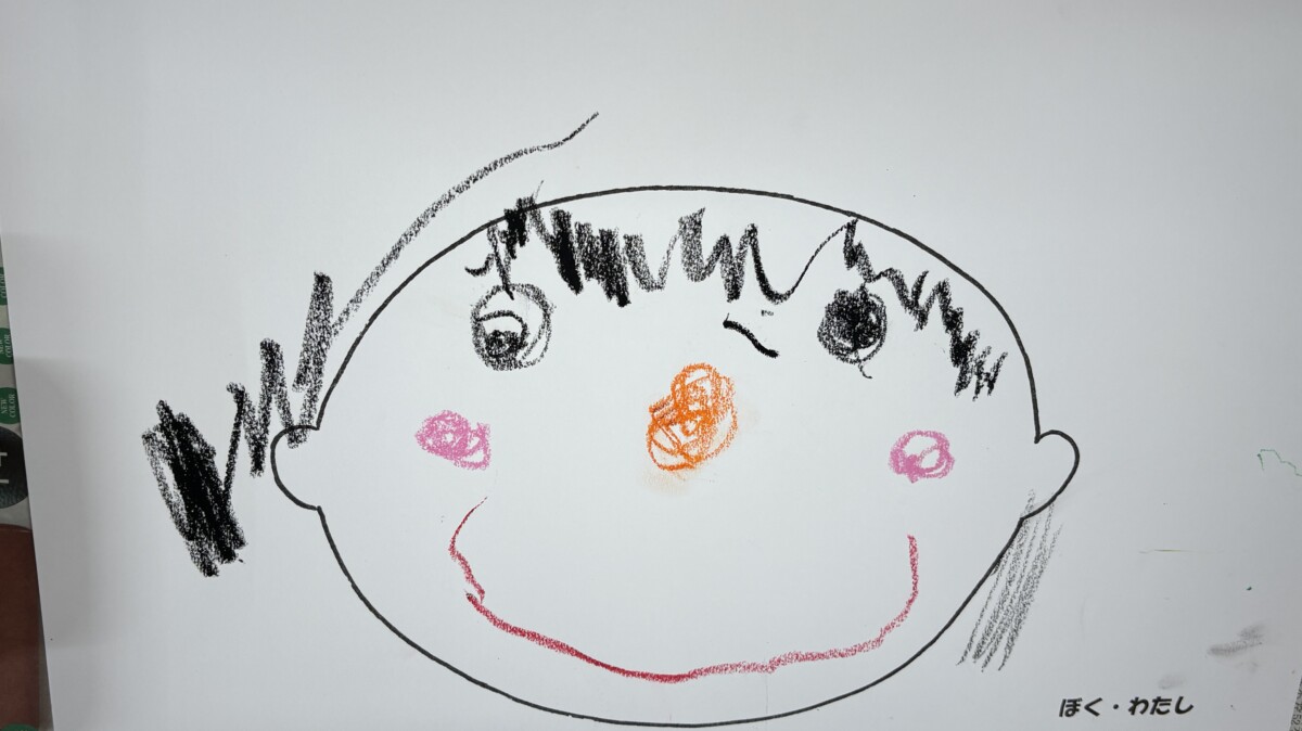 クレパスでは、目、鼻、口、眉毛、髪の毛を1つ1つ丁寧に描きました🖍️