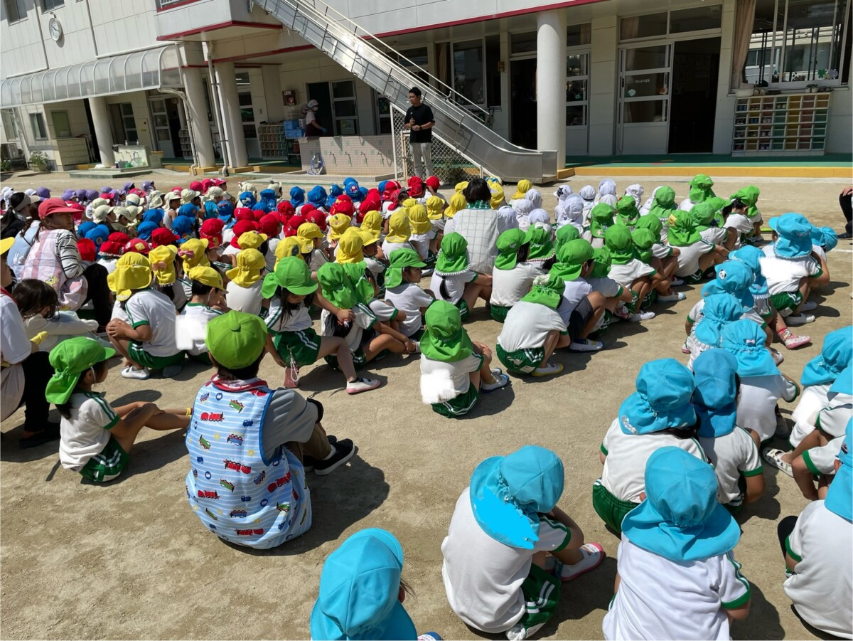 自分たちの体で1番大切なところはどこか、避難訓練はなんのためにするのか、命を守るための行動を一つひとつ確認しながらお話を聞きました。