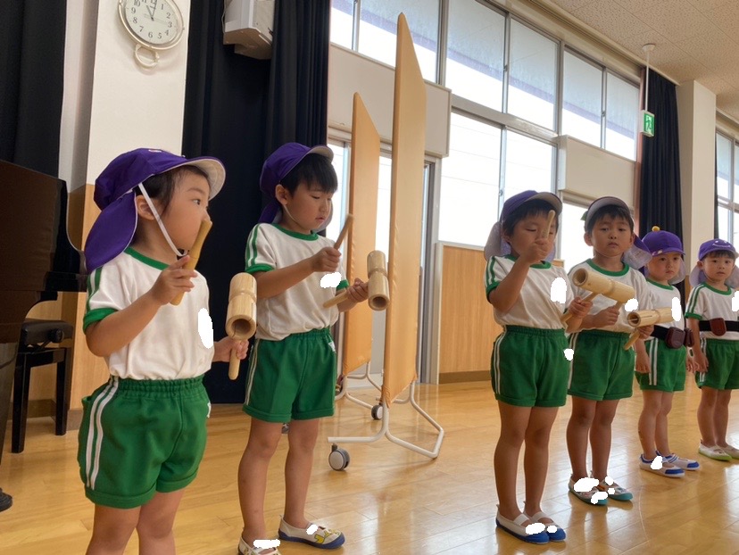 2024.06.17 花鶴丘幼稚園 つるぐみ 音感教室 今日は、蒸し暑い1日でしたね🌥 きょうはつるぐみさんは音感がありました♪ 2クラスずつに分かれて 体育館で楽器を行いました! 楽器に触れて先生の指揮をしっかりと 見て楽器を鳴らす子どもたち。 どの子も目をキラキラ✨させながら 取り組むことができてましたよ! 最近のつる4くみさんの写真を パシャリ📷 外の砂場で大きな山を作ったり お部屋ではぬりえをしたりと、、、 それぞれに好きな遊びで楽しんでいます♪ きょうの給食です🍙 以上、担当はつる4くみ 笠木でした