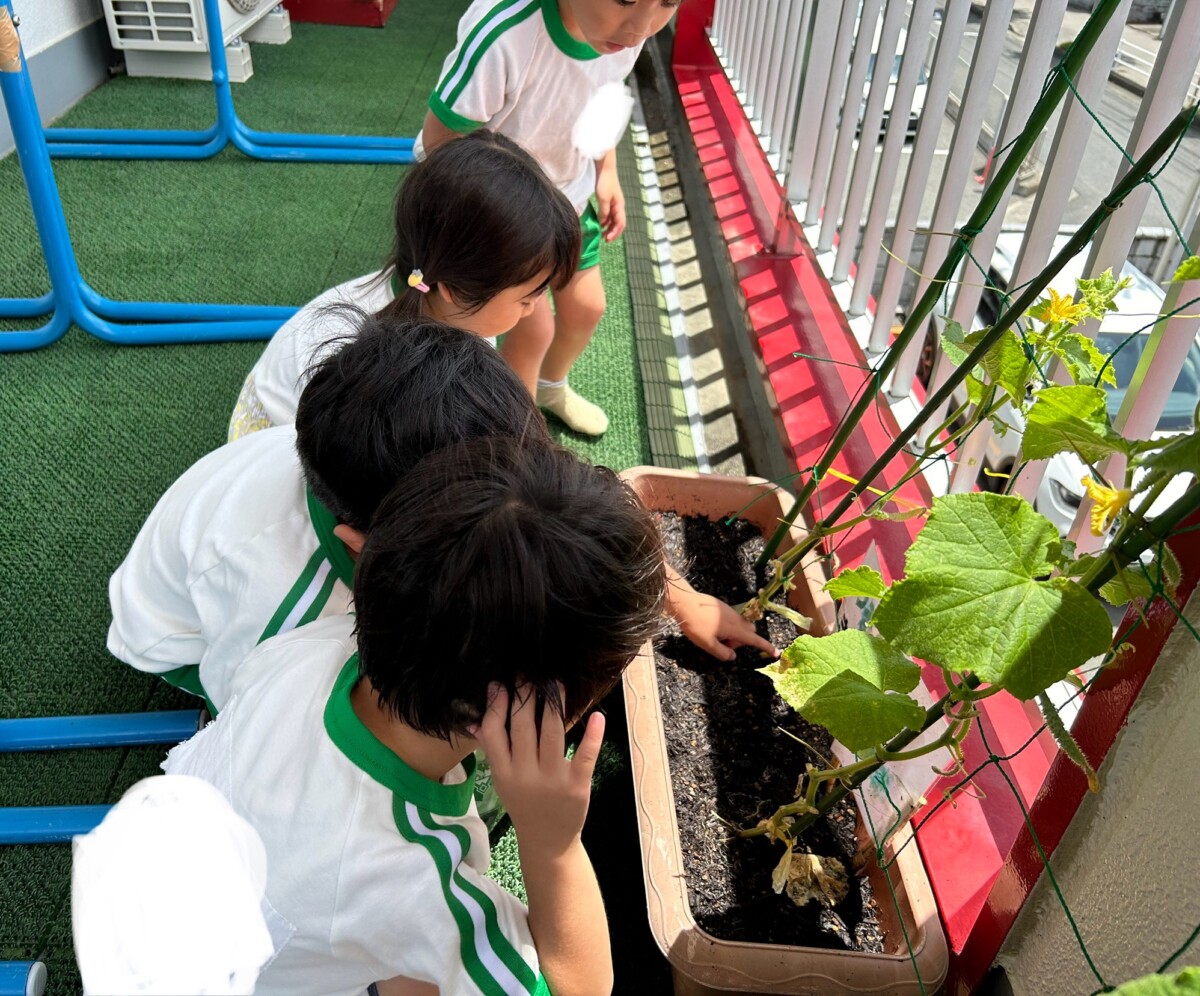 終わった後はきゅうりを観察している子どもたちです🥒