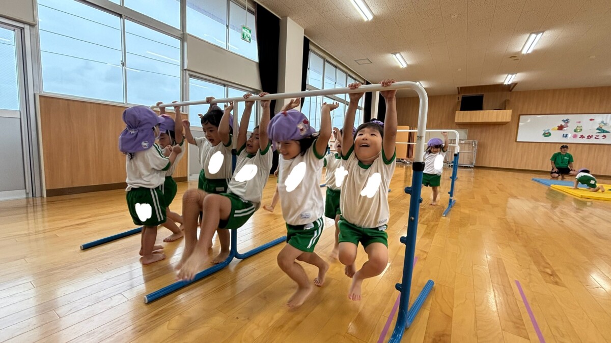 鉄棒につきそうなくらい足をあげてぶらぶらしている子もいて、