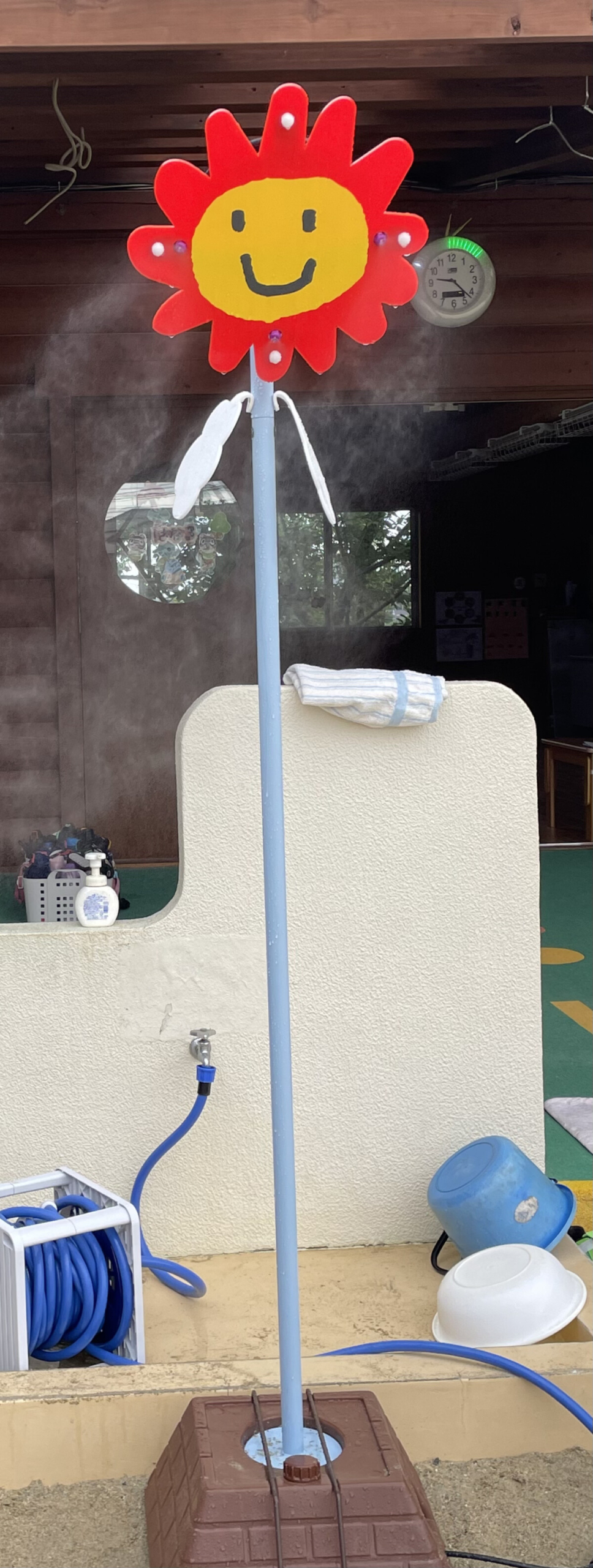 子どもたちは暑さに負けずに元気いっぱい遊んでいます。最近園では園庭にミストを設置しました!いよいよこれからますます暑くなりますが、時折涼みながら暑さ対策もしていきたいと思います。保護者の方にも送迎時など、少しでも涼んでいただけたらと思います♪