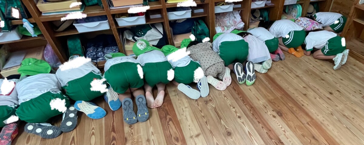 今日の午後は、先日雨により延期していた防犯訓練を行いました。知らない人が来たら…話しかけられたら…と再度子どもたちと防犯についてお話をしています。