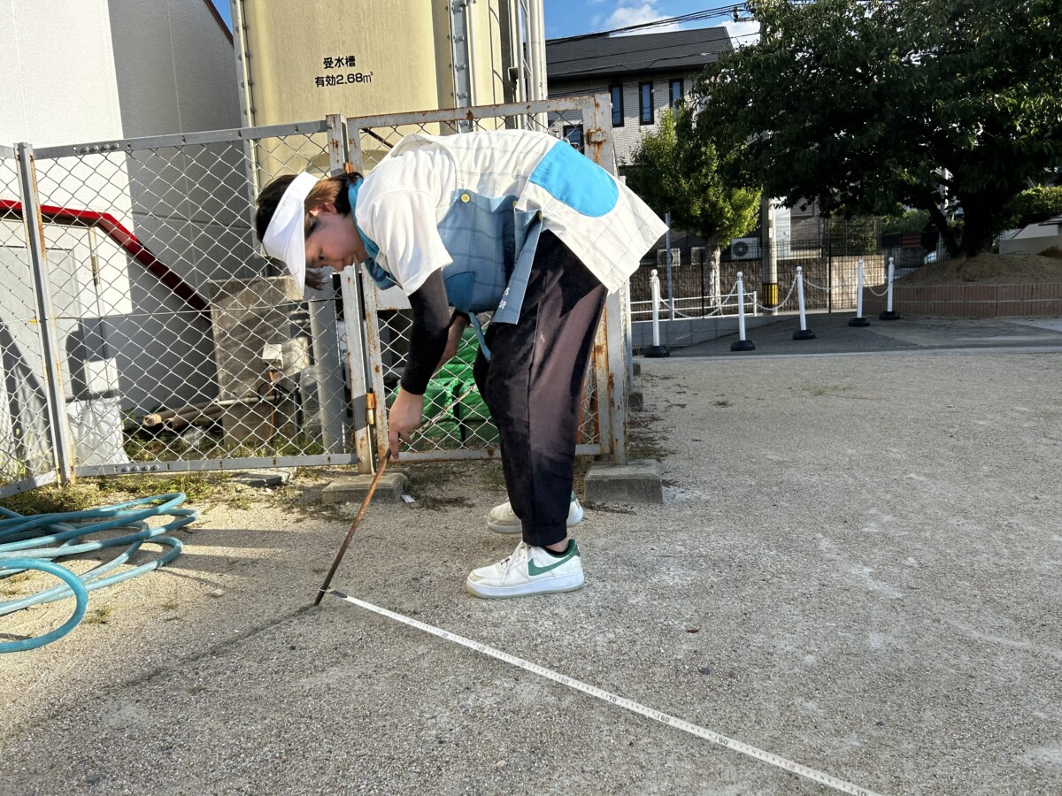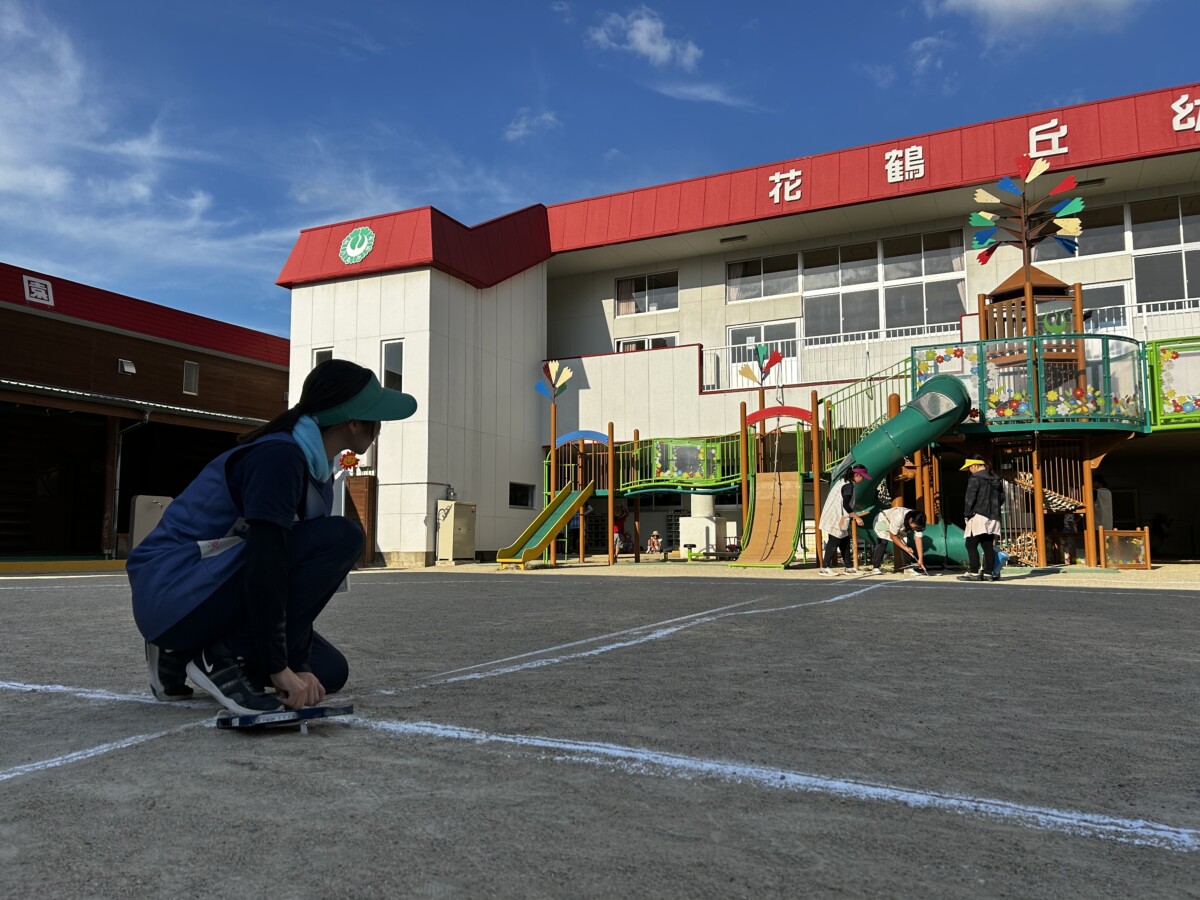 子どもたちの降園後、先生たちで園庭のライン引きを行いましたよ😁