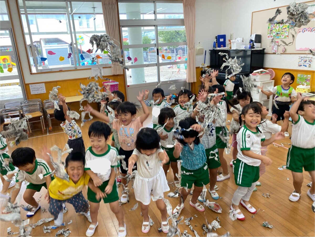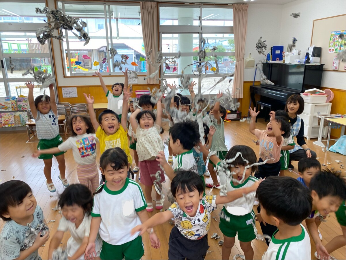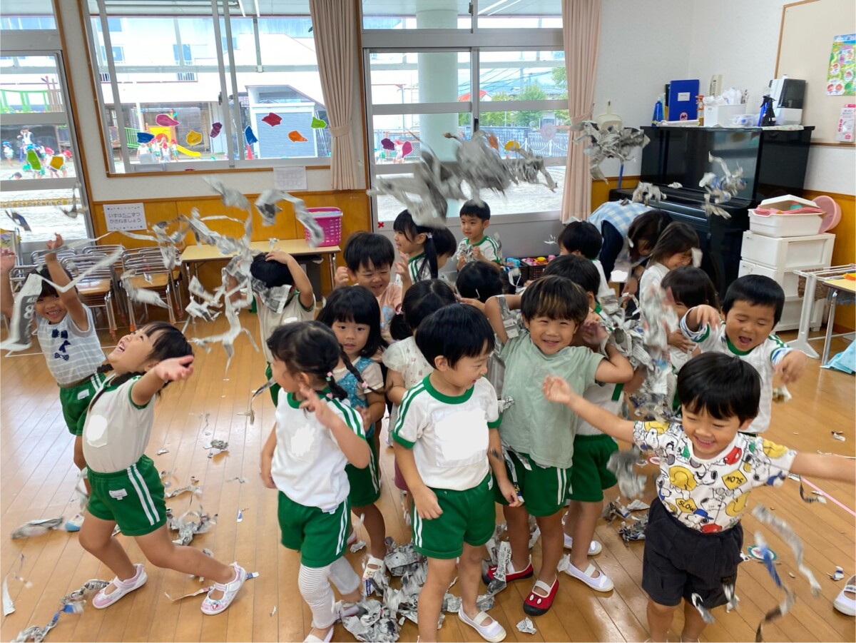 すると新聞紙の雨が降ってきて、子どもたちは大喜び♥️