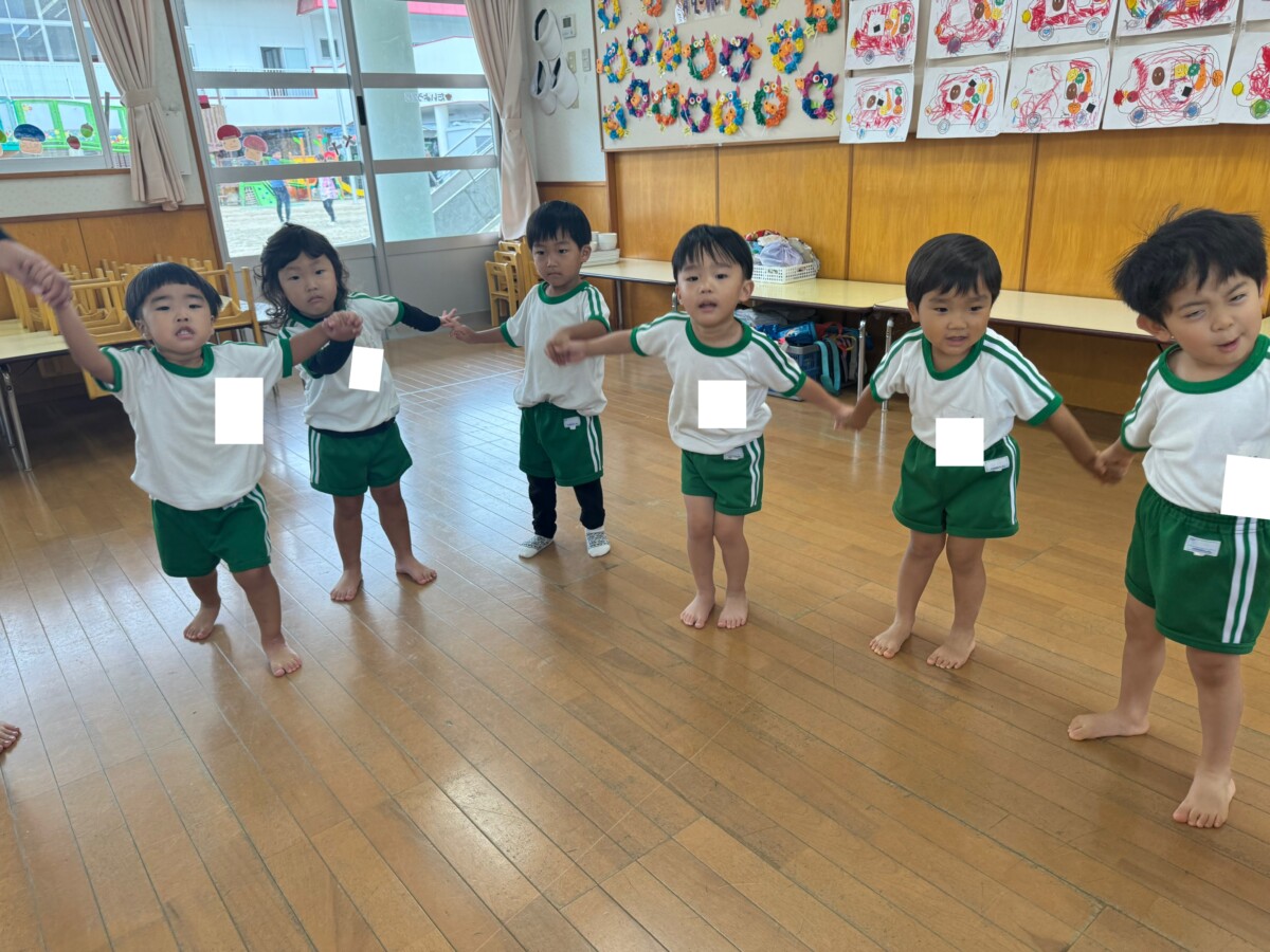 みんなで手を繋いで輪になり集まったり