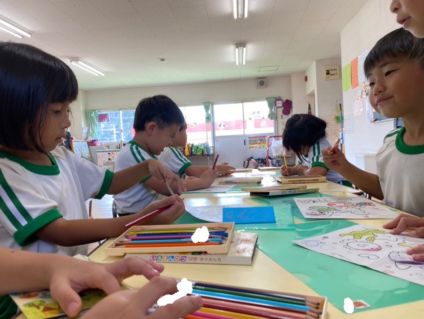 自分で選んだ塗り絵を楽しそうに塗ってますよ!