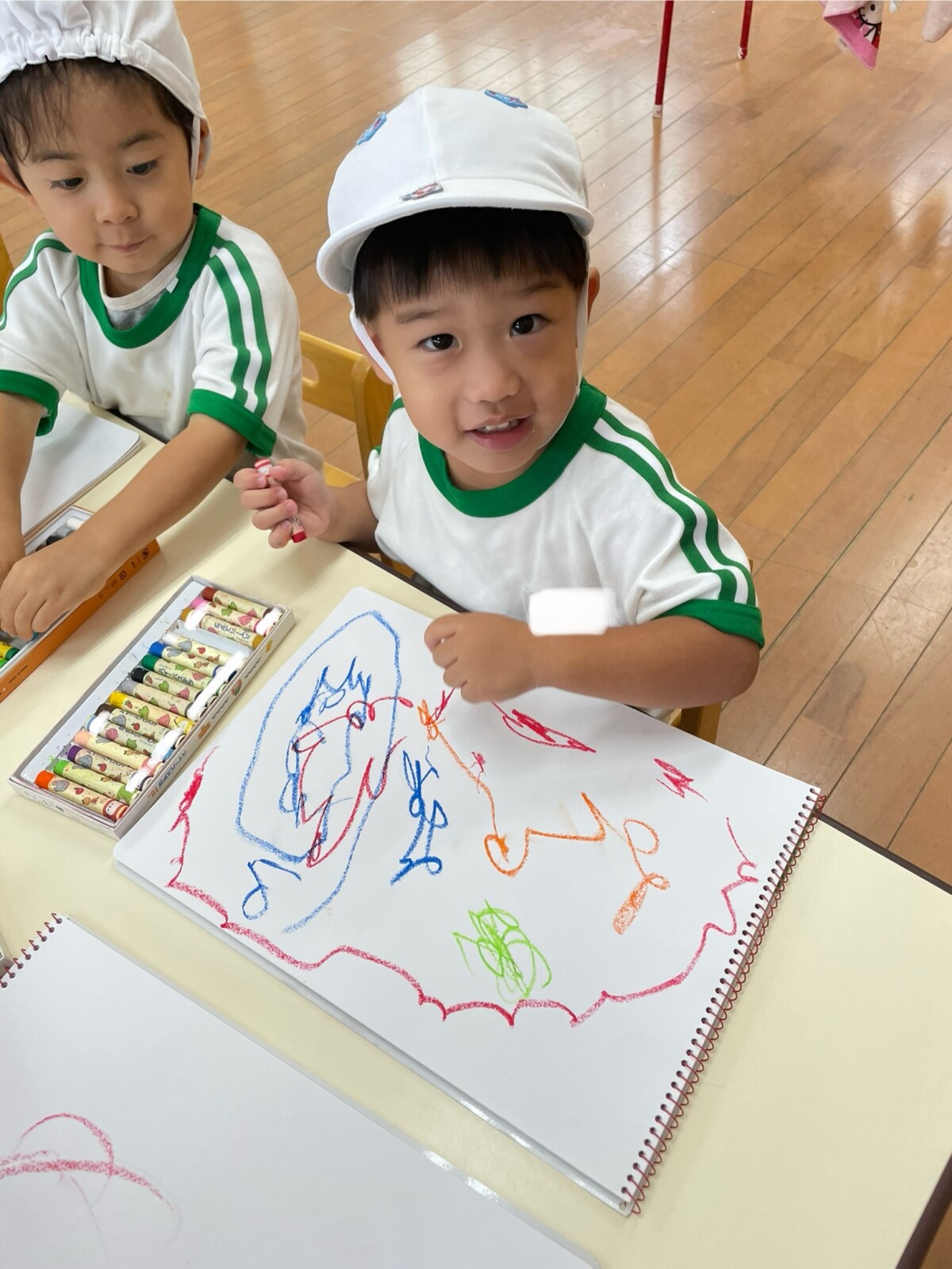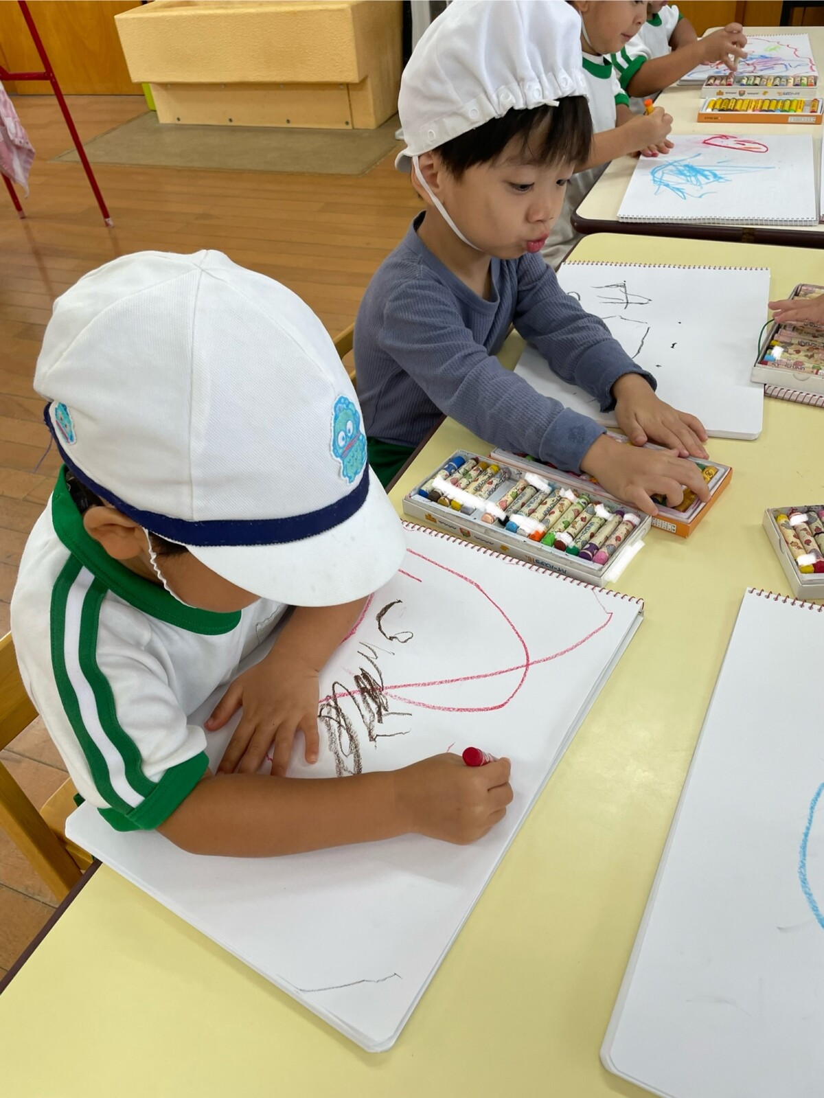 昨日は朝の活動で自由画帳を行い