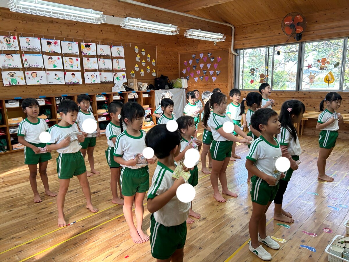 2024.11.08 花鶴丘幼稚園 晴れました☀️ 今日も天気の良い1日でしたね☀️ はな3くみでは乾布摩擦をしました。 しっかりとゴシゴシしましたよ✨ 風邪を引かない強い身体にして いきましょうよね! また、室内で体育遊びをしましたよ。 マットのまわりをくまさん歩き 玉を投げる練習 など楽しみながら行いましたよ🎶 来週もたくさん身体を動かして いきましょうね🌱 本日の給食 ご飯 キーマカレー コールスローサラダ バナナ 美味しかったですね!! 本日の担当は、松田でした。
