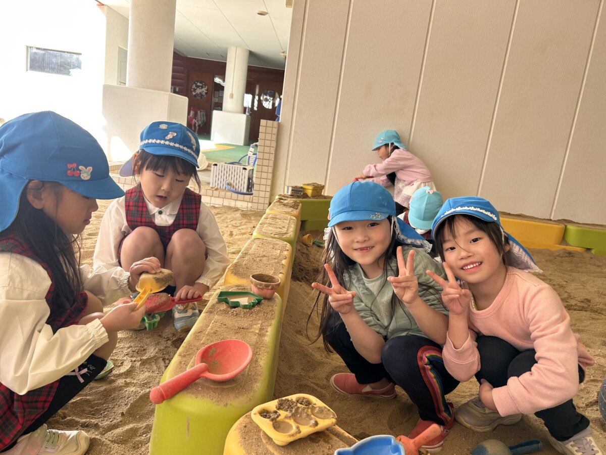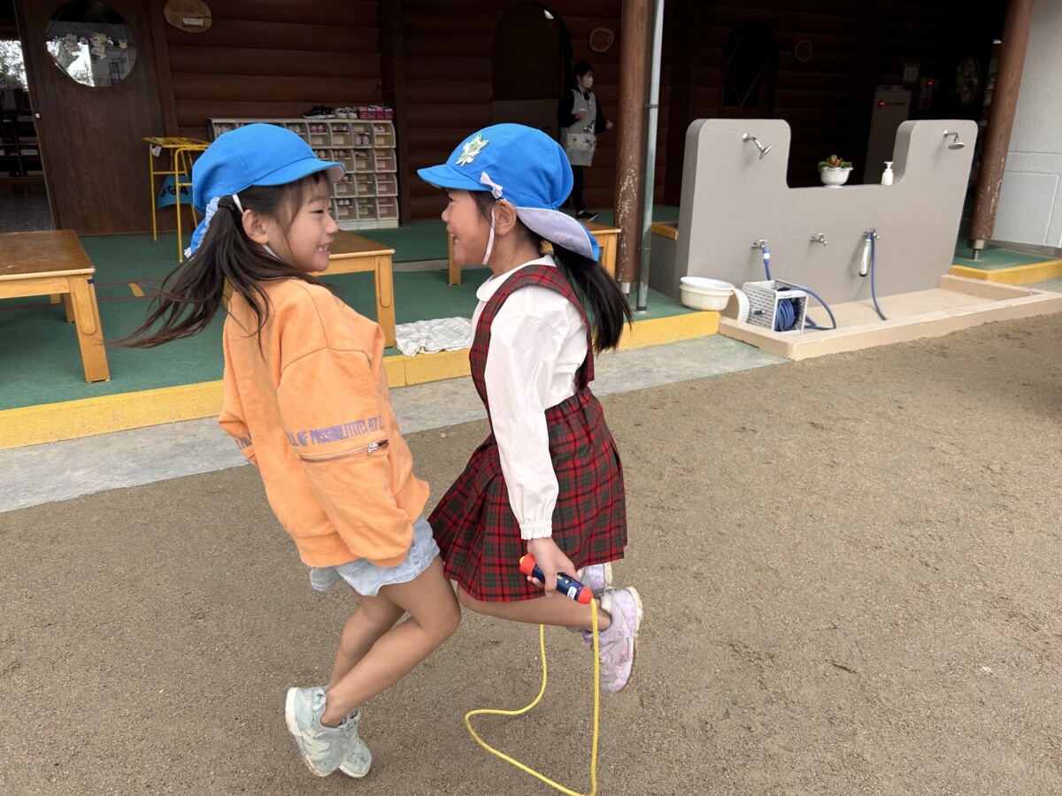 最近の外遊びでは 2人縄跳びをしたり 砂場で遊んだりと