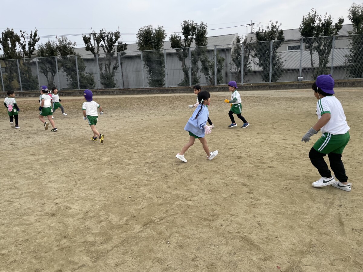 つる4くみのお兄さん、お姉さんと一緒にしっぽとりをしました。