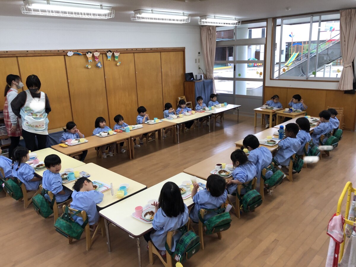 給食はみんなで輪になって食べました!