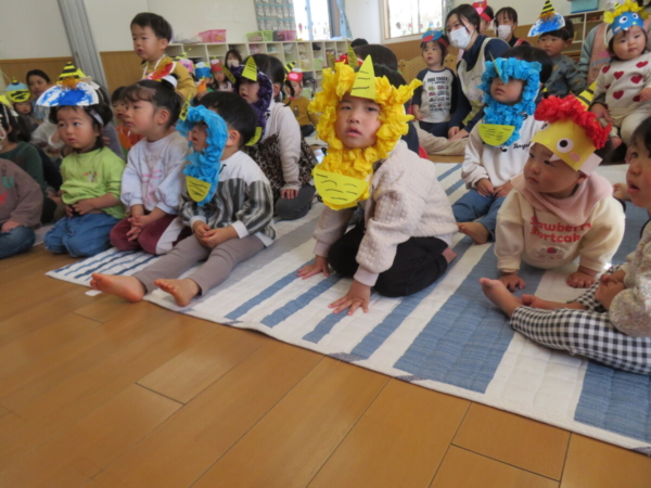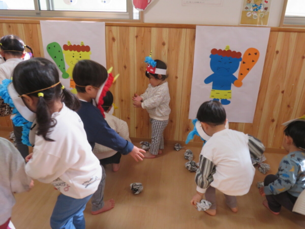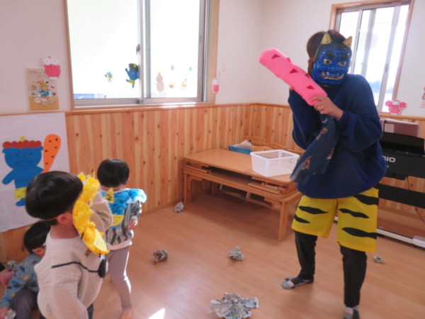 2月3日に節分遊び。「みんなが健康で幸せに過ごしますように」という意味を込めて節分行事に参加しました。