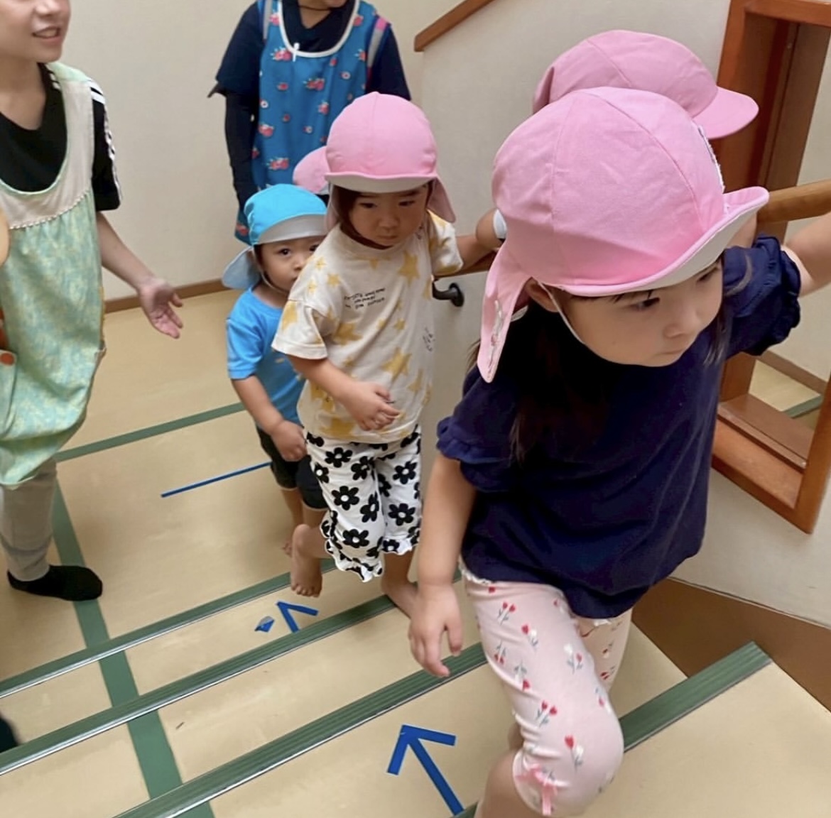 急いで園を出てやまびこ幼稚園の2階まで避難します!火災訓練が身に付きすぎて口を押えながら逃げる子も(笑)みんな泣かずに落ち着いて逃げることができましたよ✨これからも様々な災害を想定した訓練を大切に取り組んで行きます!