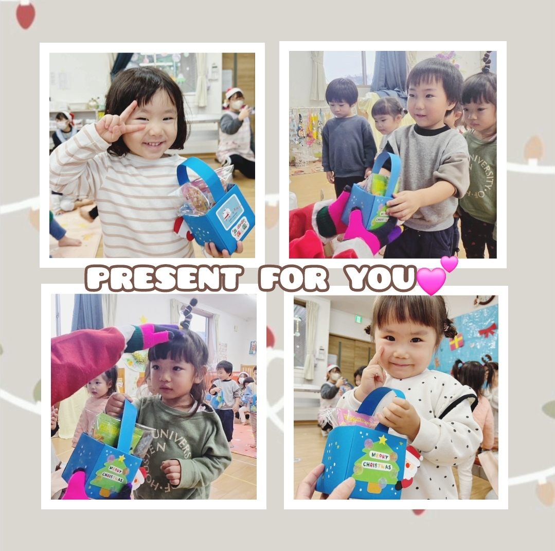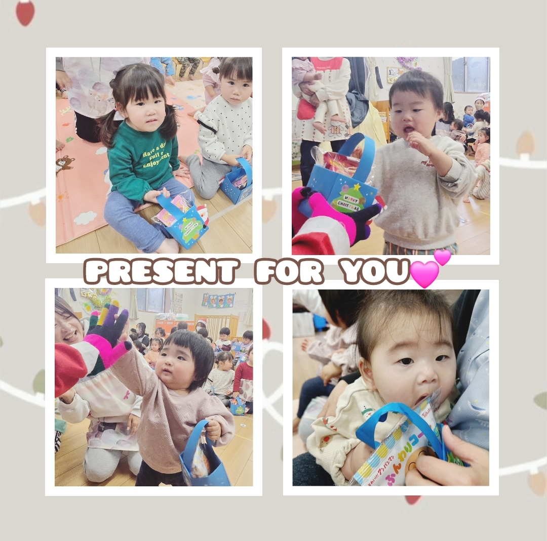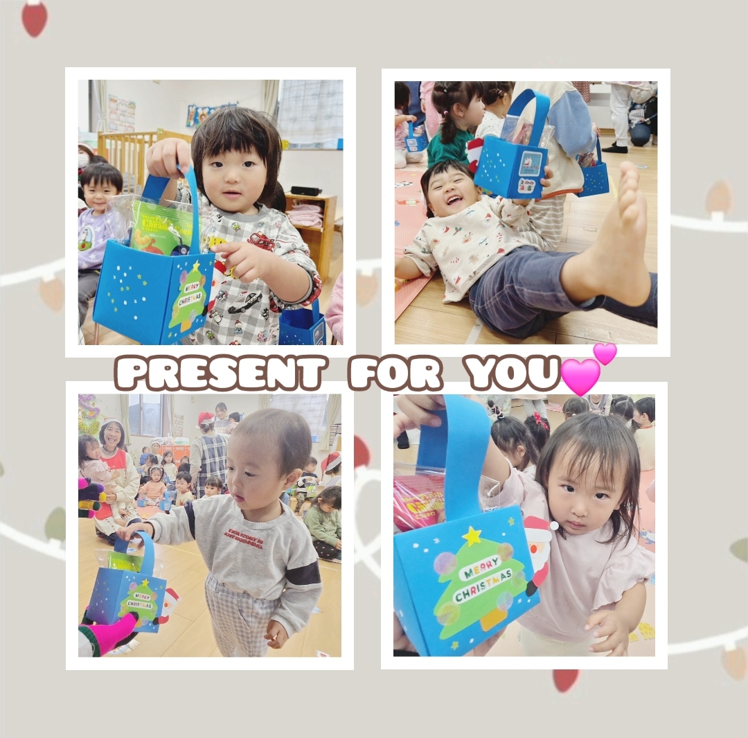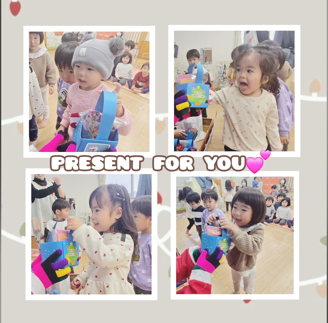かさじぞうクリスマスVer.はみんなで楽しく合奏をしましたよ~!そしてそして!サンタさんの登場です🎅待ちに待ったプレゼントを受け取るとお目目がキラキラ✨サンタさんにありがとう!をしっかり言えた子どもたち。バイバイする時は寂しそう…でもハイタッチをして「発表会頑張ります!」とお約束をしました!