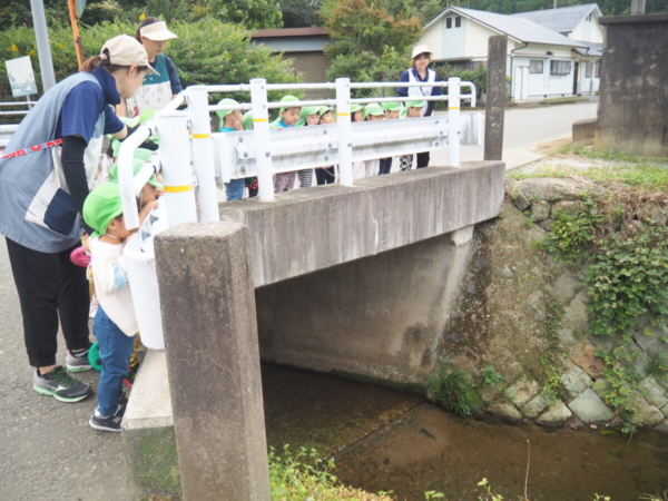 また、少し歩くと次は川が流れており子ども達は立ち止まって静かに耳を澄ませて