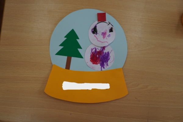 今回の製作では雪だるまのお顔やボタンを描くこと、雪だるまと帽子を糊で貼ることを頑張りました!