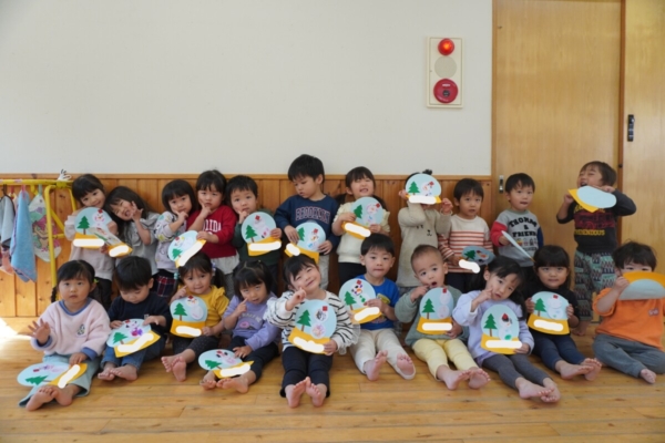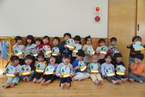今日の2歳児さんは12月の制作『スノードーム』を作りました!