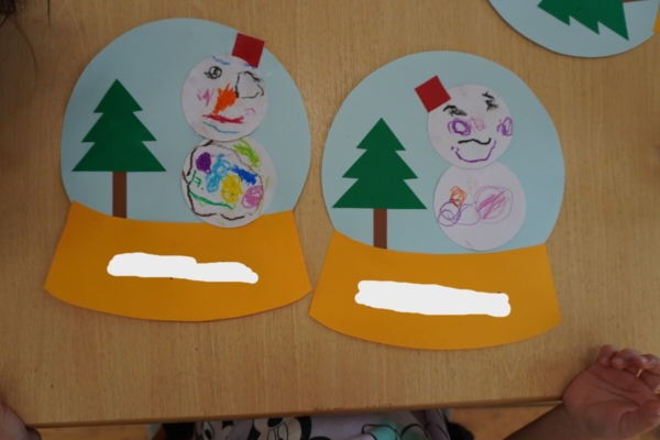 今回の製作では雪だるまのお顔やボタンを描くこと、雪だるまと帽子を糊で貼ることを頑張りました!