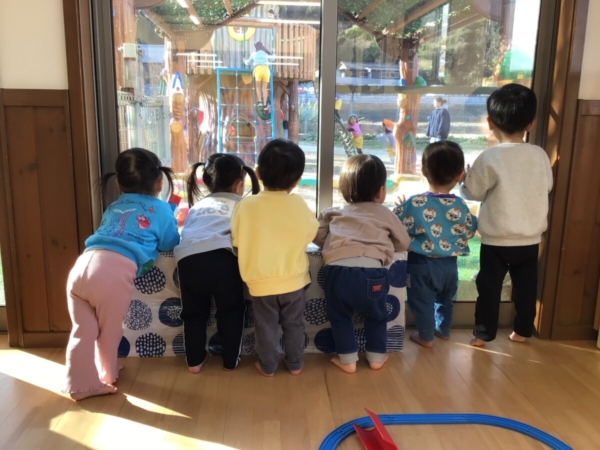 お外でお兄ちゃんお姉ちゃん達が遊んでいる姿をじーーいっと見つめる後ろ姿♡