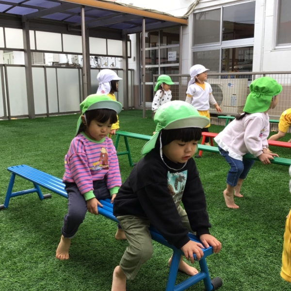 今日は平均台や鉄棒を使い沢山体を動かして遊びました!