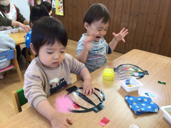 0.1歳児さんのひな祭り製作の様子をお届けしたいと思います☆