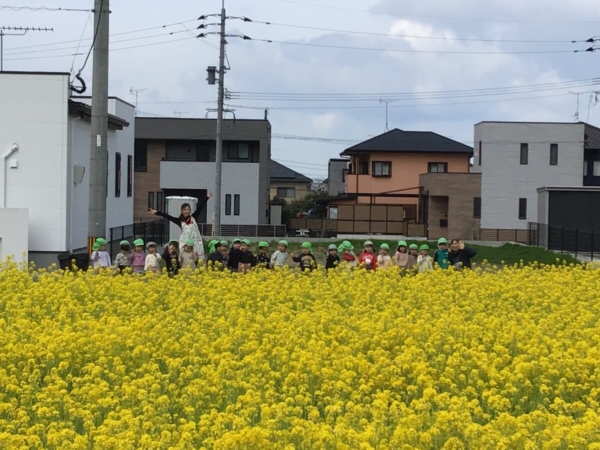 菜の花畑のハチを見つけて”ぶんぶんぶん”を歌い楽しんでいます☆★