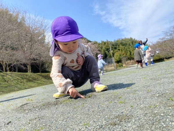 道中、お花を見つけて指差したり工事の車を見つけて喜ぶお友達!!