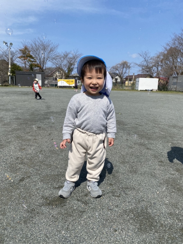 元気いっぱいにシャボン玉を追いかけるお友達(*^^*)