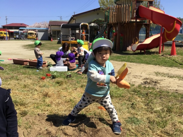 小さなスコップを持ち、一生懸命に土を入れていましたよ!!