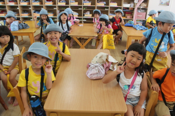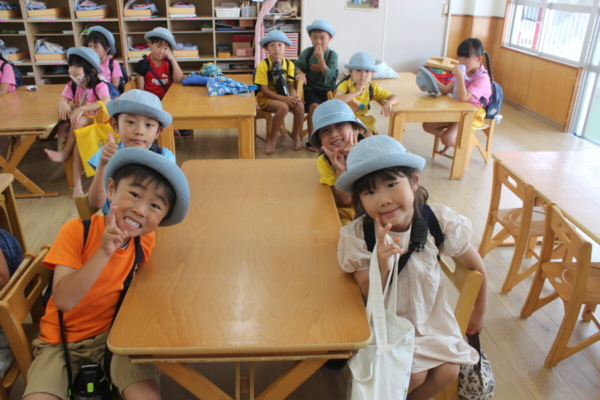 今日の全体朝礼で園長先生から楽しかったことを聞かれると