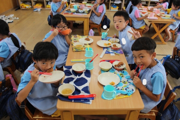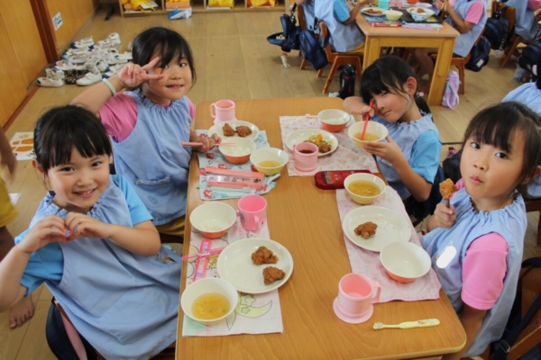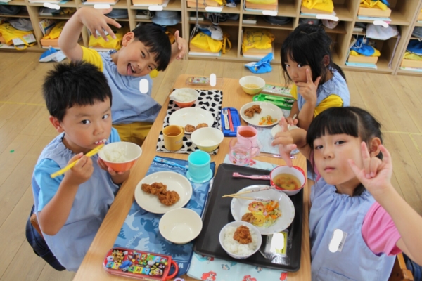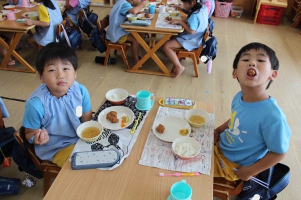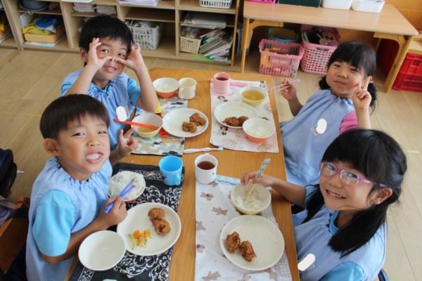 その後は、みんなで給食を食べました🍚お友だちとお話を楽しみながら食べていましたよ!