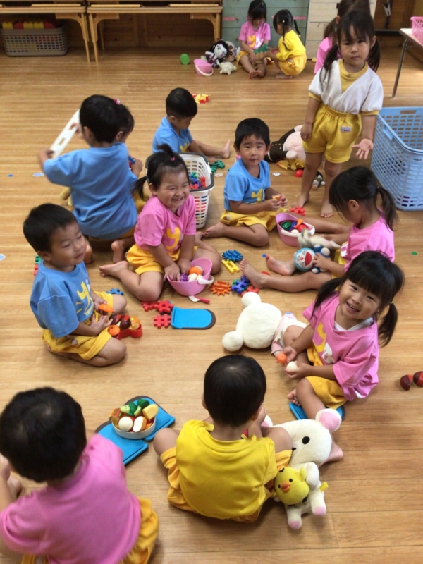 「一緒に遊ぼう~!」「みんなでおかたづけよ~!」と声を掛け合いながら遊んだりお片付けする姿が沢山見られています♪