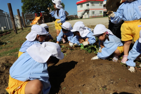 今日はポカポカいい天気で、1くみさんが楽しみにしていたさつまいも堀り日和!