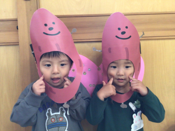 今日は誕生会の出し物で使用したサツマイモを借りて、