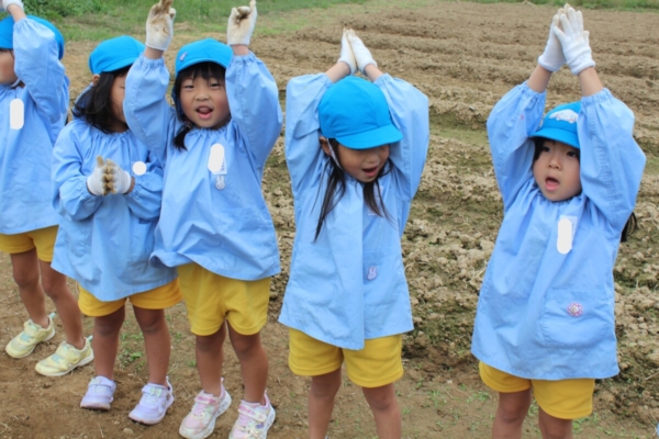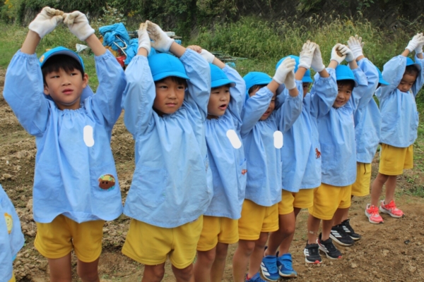 気温は寒いですが、みんなで鬼ごっこをすると身体も温まり、鬼ごっこあとは「あつ~い」「汗かいた~」と言っている子ども達です。