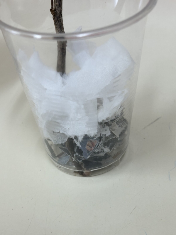 みのむしに写真のように新聞紙やティッシュがある紙コップに入れると