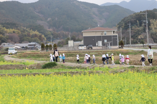 菜の花が少しずつ咲いてきたので「菜の花を見に行くぞ~!」と園近くの畑へ見に行きました♪