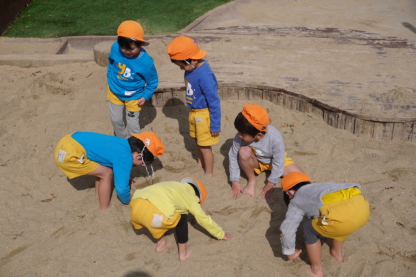 幼稚園より広い、グランドにやる気はさらに上がり、頑張るぞ!と