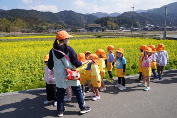 幼稚園の近くに咲いている、菜の花を身に行ったり、春を探しに行ったりと