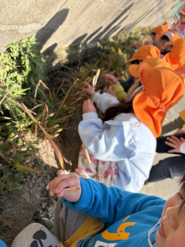 つくしを見つけて、夢中になって収穫をしている子ども達(*^▽^*)
