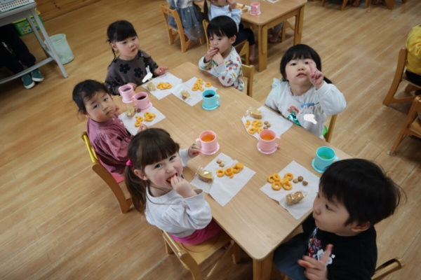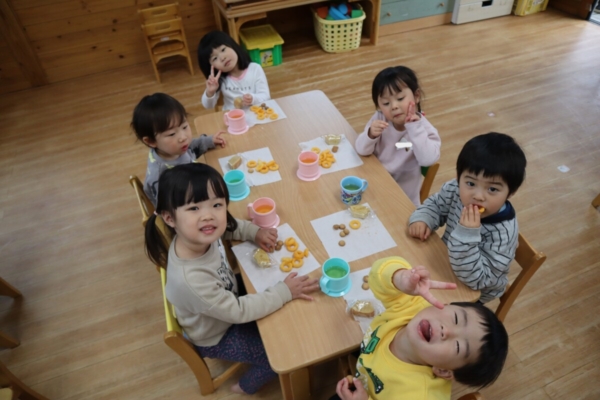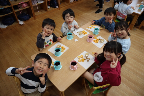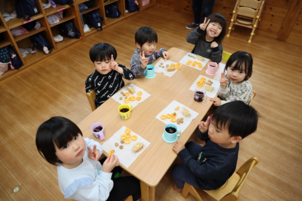登園して「今日おやつ食べるねぇ( *´艸`)?」と楽しみにしている様子が見られました♪