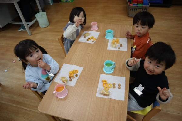 おやつやジュースを「おいしいねっ」とニコニコで食べていました( *´艸`)